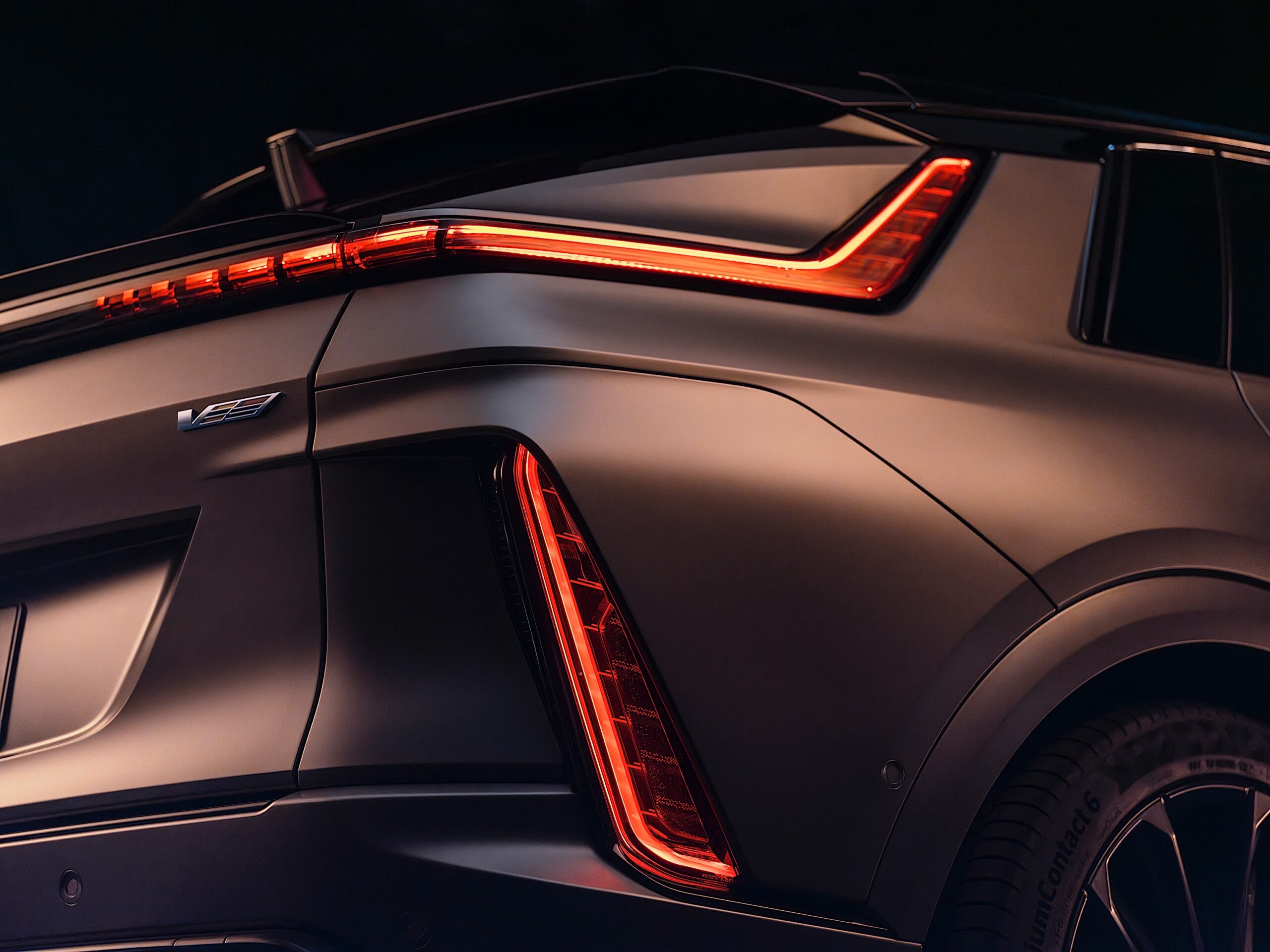 The Lyriq-V is powered by a dual-motor all-wheel-drive system, producing an estimated 615 horsepower and 650 lb-ft of torque. Cadillac estimates a 0-60 mph time of 3.3 seconds when using the Velocity Max feature. A 102-kilowatt-hour battery pack provides an estimated range of 285 miles.
