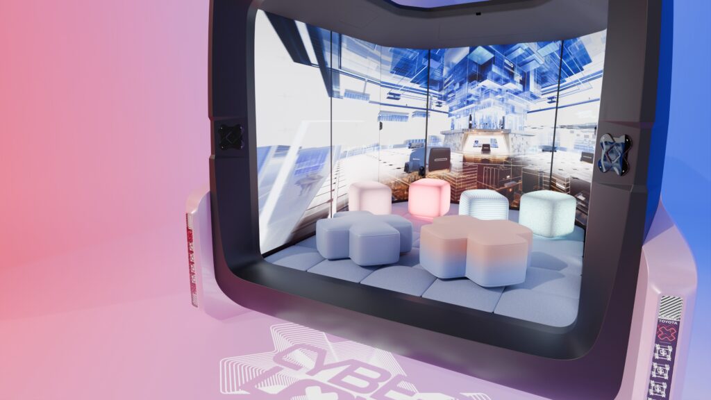 The augmented reality interface extends this vision by blending digital content into the real world. Through projection and immersive audio, the driver and passengers can explore virtual environments layered over physical surroundings. Cyber Love becomes a gateway between realities, reflecting Toyota’s broader ambition to merge mobility with experience.