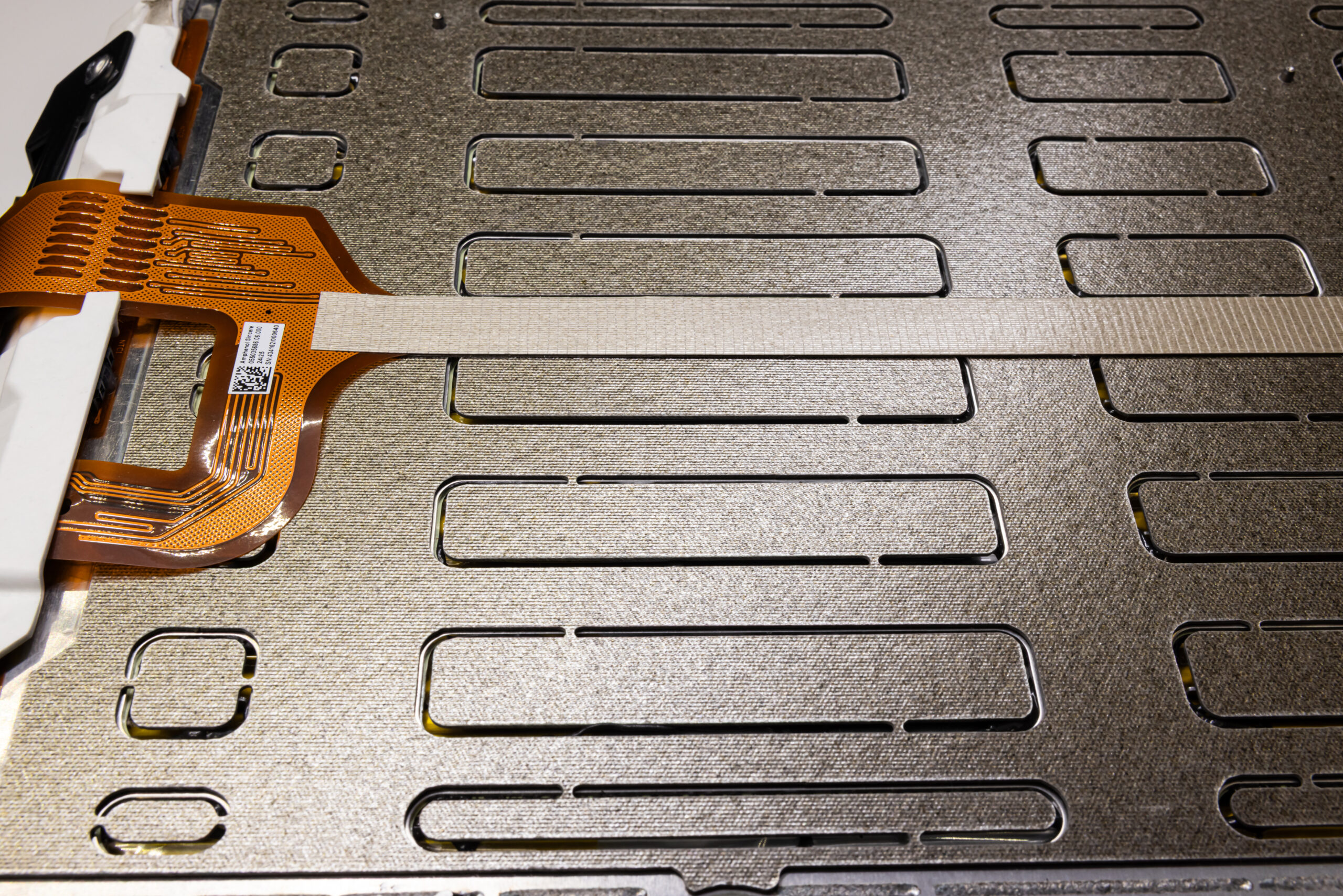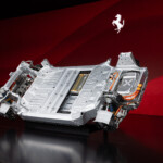 Ferrari developed the Elettrica’s 122-kWh battery pack internally. It has an energy density of 195 Wh/kg and operates at up to 880 volts, allowing for charging at up to 350 kW. The pack’s design integrates it into the chassis to enhance stiffness and safety. About 85 percent of the modules are positioned low in the structure to improve handling and weight distribution, which is balanced at 47 percent front and 53 percent rear. The company stated that the battery is designed to be removable and serviceable.
