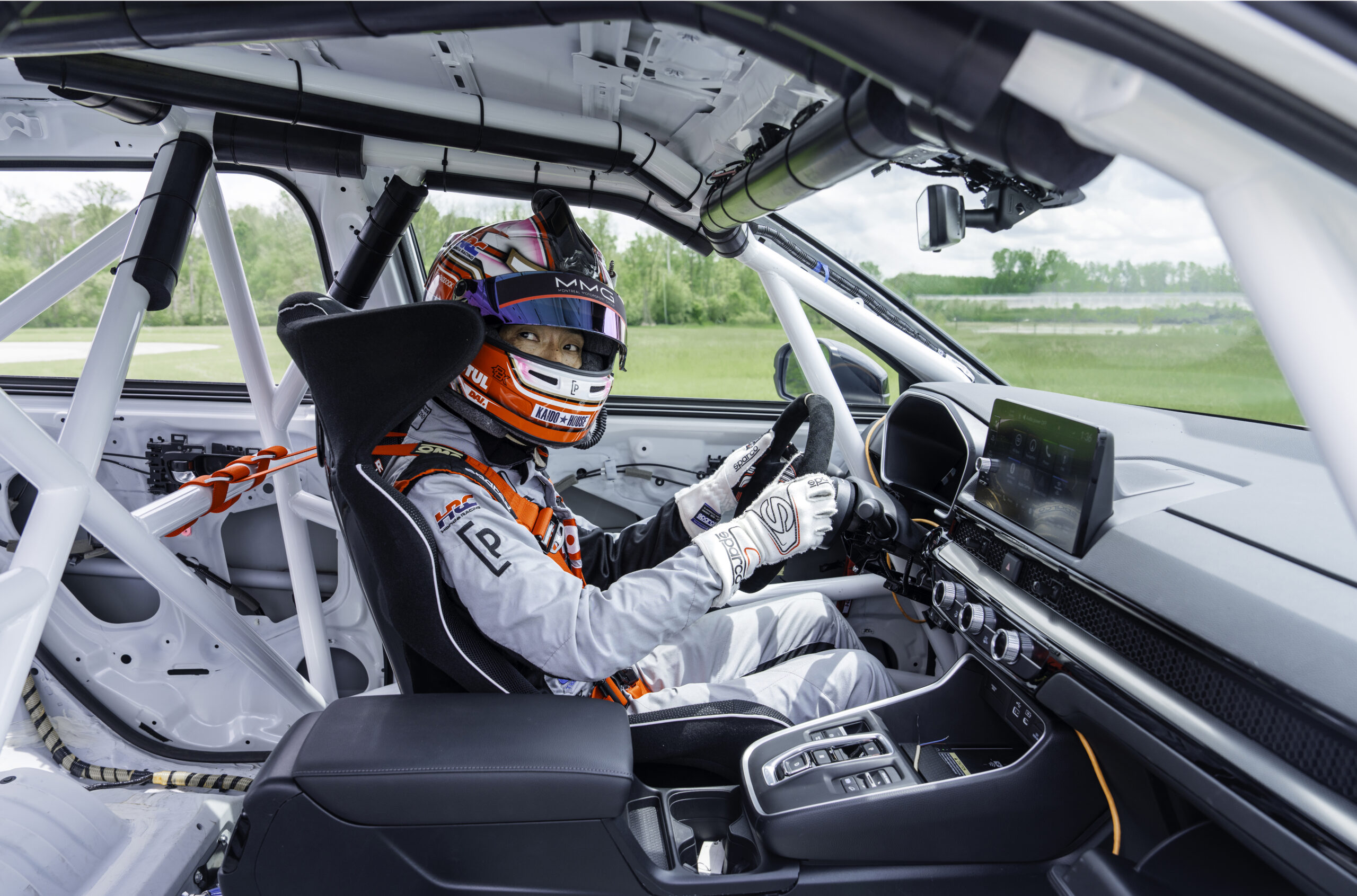 The CR-V e:FCEV will compete with its production zero-emissions powertrain, which consists of a second-generation Honda fuel cell system manufactured in Michigan, a front-mounted electric motor, a 17.7 kWh battery, and two high-pressure hydrogen tanks. The only modifications for competition include a slightly lowered suspension, racing brake pads, lightweight 18-inch wheels with Yokohama Advan A052 tires, a racing seat, and a safety cage. These changes were made by Honda of America Race Team (HART) and engineers at the Honda Performance Manufacturing Center (PMC) in Marysville, Ohio, where the vehicle is built.