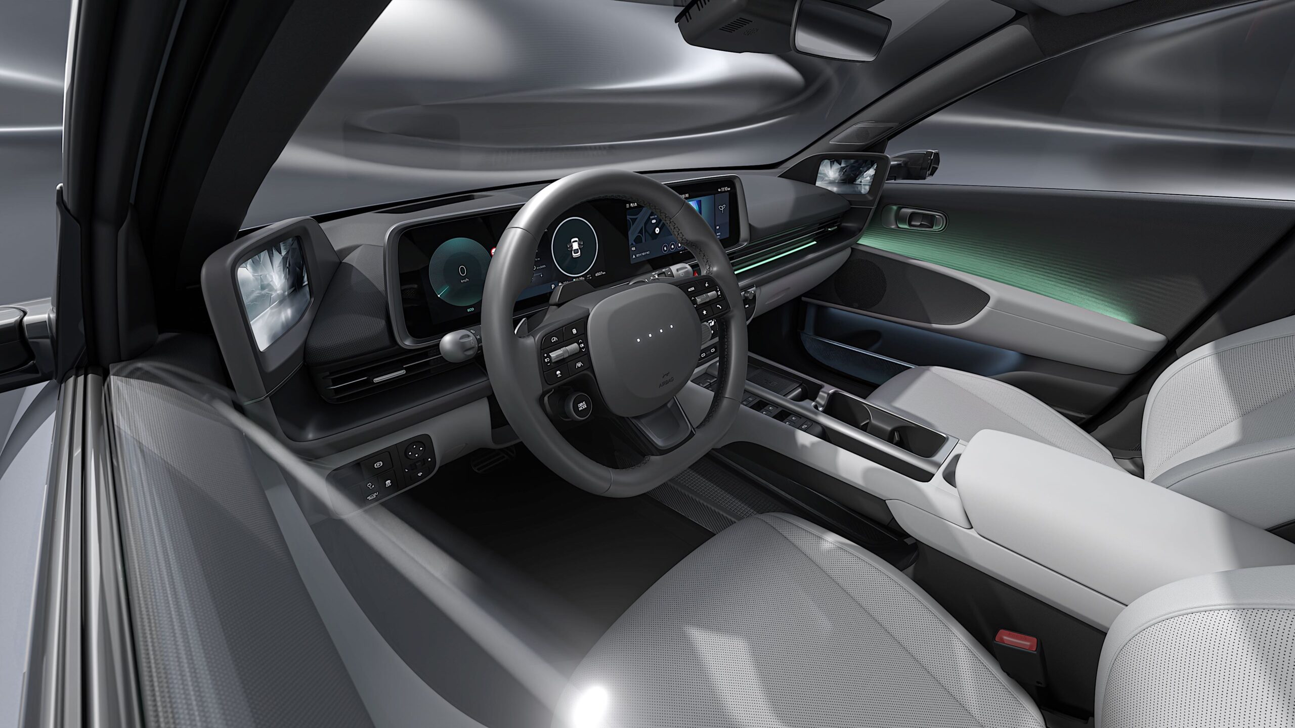 The interior of the Ioniq 6 has also been revised. Hyundai has updated the steering wheel design and interior materials. The center console has been redesigned, and the climate control display is now larger.