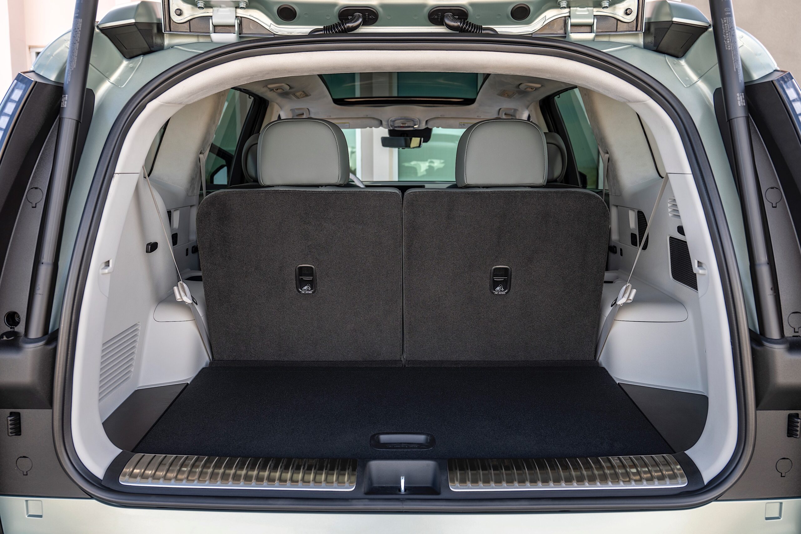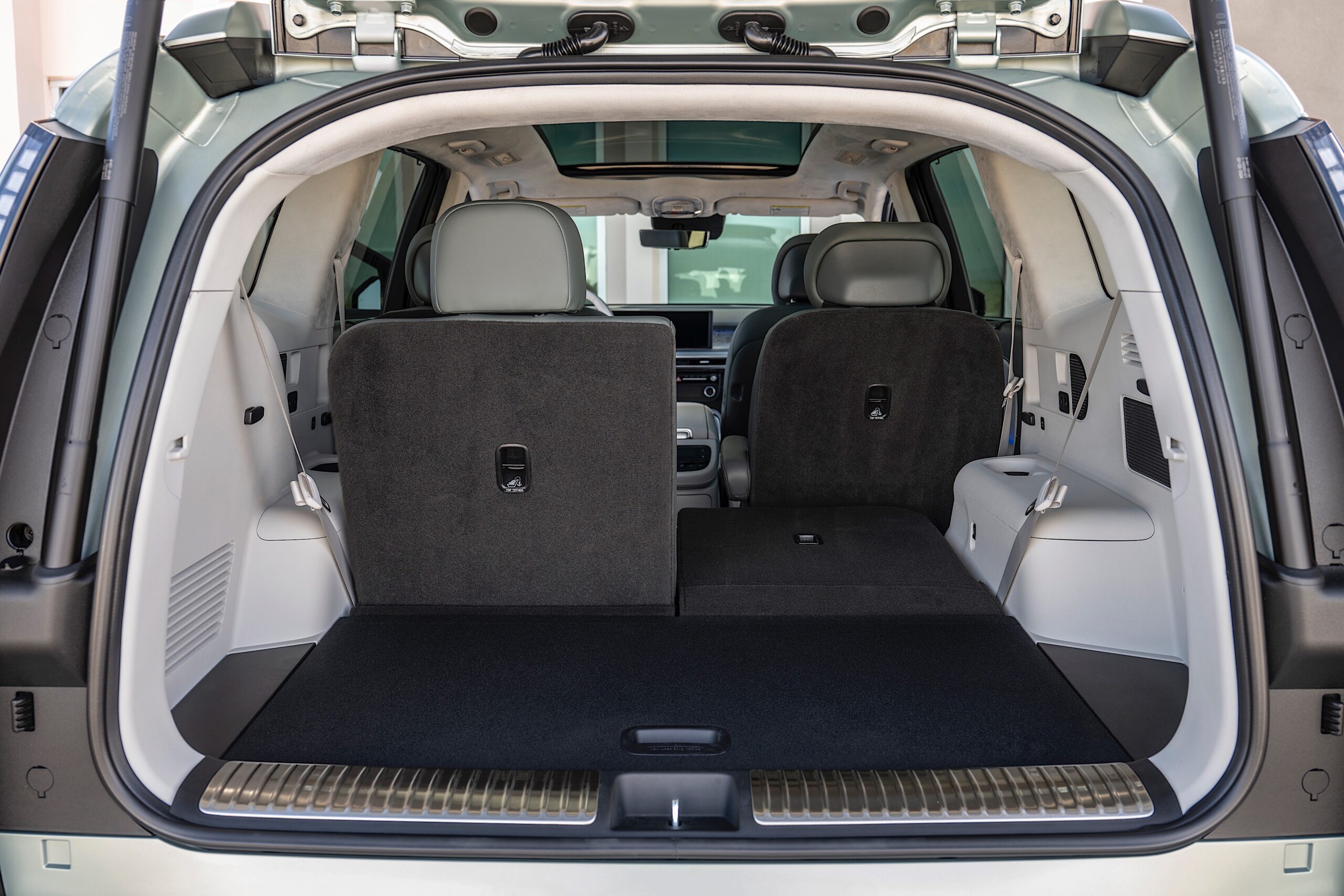 The Ioniq 9’s ADAS suite includes various safety systems, such as Forward Collision-Avoidance Assist, Lane Keeping Assist, and Blind-Spot Collision-Avoidance. Hyundai has reinforced the vehicle structure to provide enhanced safety for the battery and all passengers, with features such as pre-tensioners on third-row seatbelts and ten airbags.
