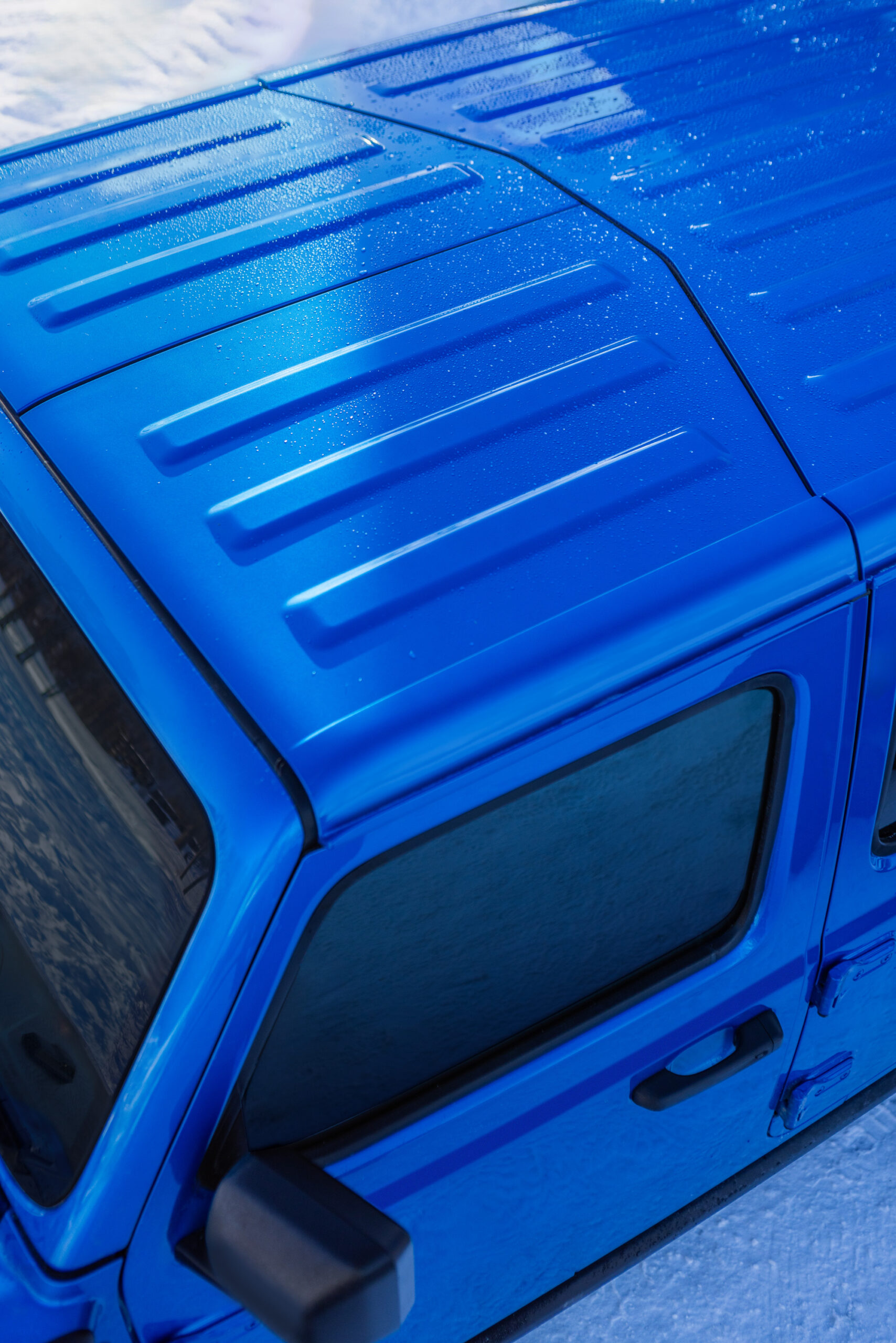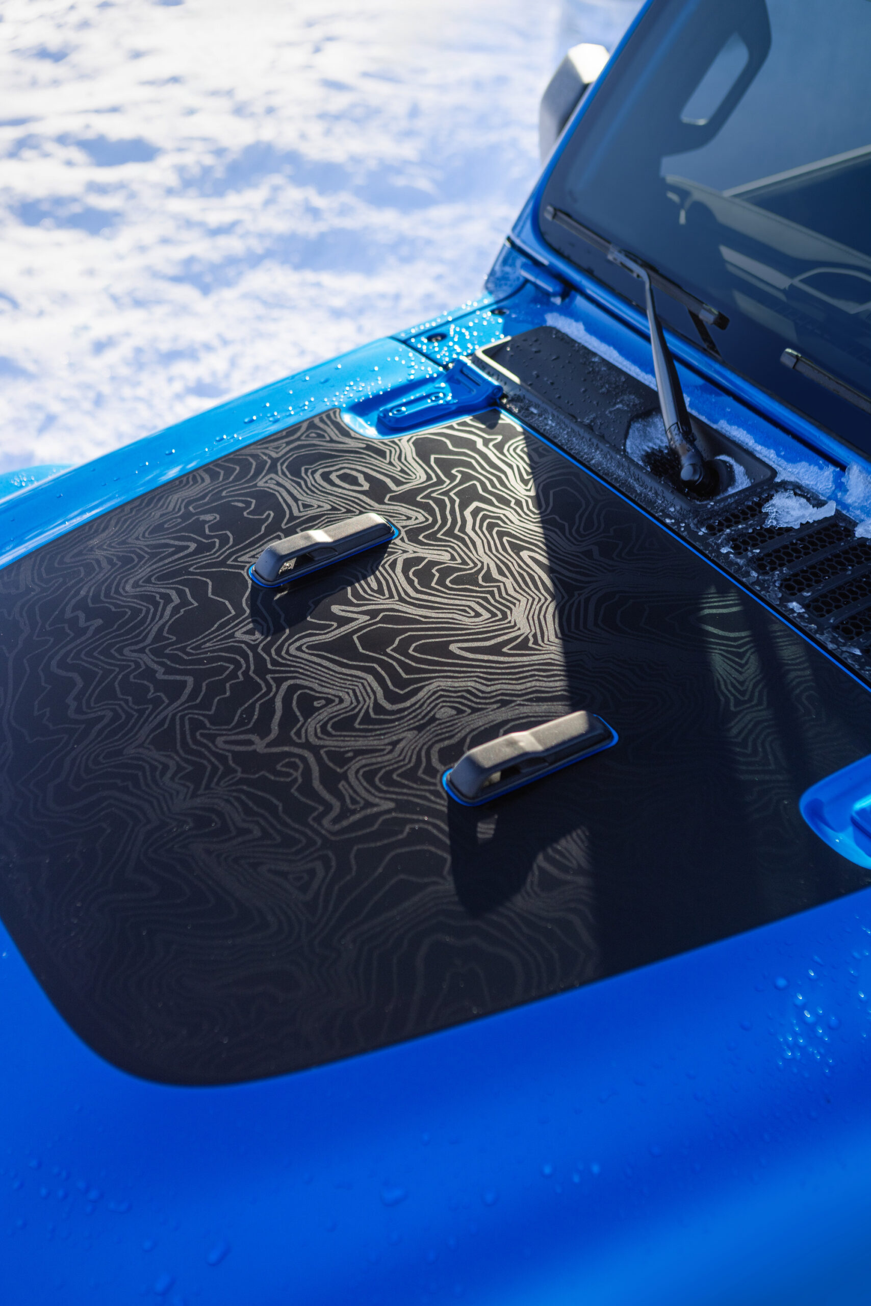 The 2025 Wrangler 4xe Backcountry includes additional off-road-focused equipment such as Mopar all-weather slush mats, auxiliary switches for accessory installation, and a three-piece body-color hardtop. The Uconnect 5 system supports over-the-air updates and includes AppMarket, which provides access to adventure apps, games, and digital services. Features like Wi-Fi hotspot capability, Jeep Offroad Pages Plus, and SiriusXM Radio can be accessed through the system.