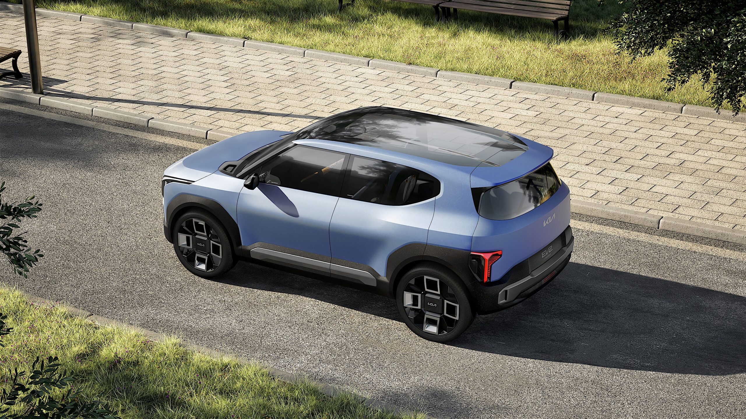 The Concept EV2 is a B-segment electric SUV that previews a future production model. The vehicle is designed for urban mobility, incorporating new technology and interior flexibility. It aims to provide users with an adaptable and efficient driving experience.