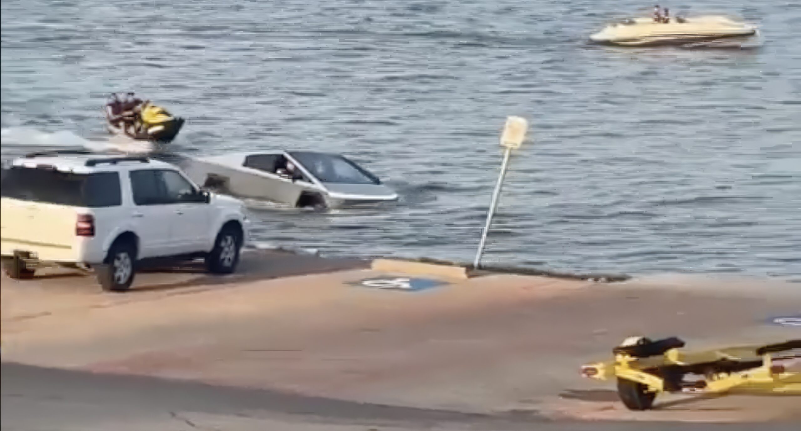 Reddit user rcnfive shared a video of a Cybertruck launching a jet ski from in the water itself. The truck is nearly completely submerged underwater as the rider of the personal watercraft powers up the motor and speeds away. The Cybertruck then emerges from the lake in seemingly perfect working order.