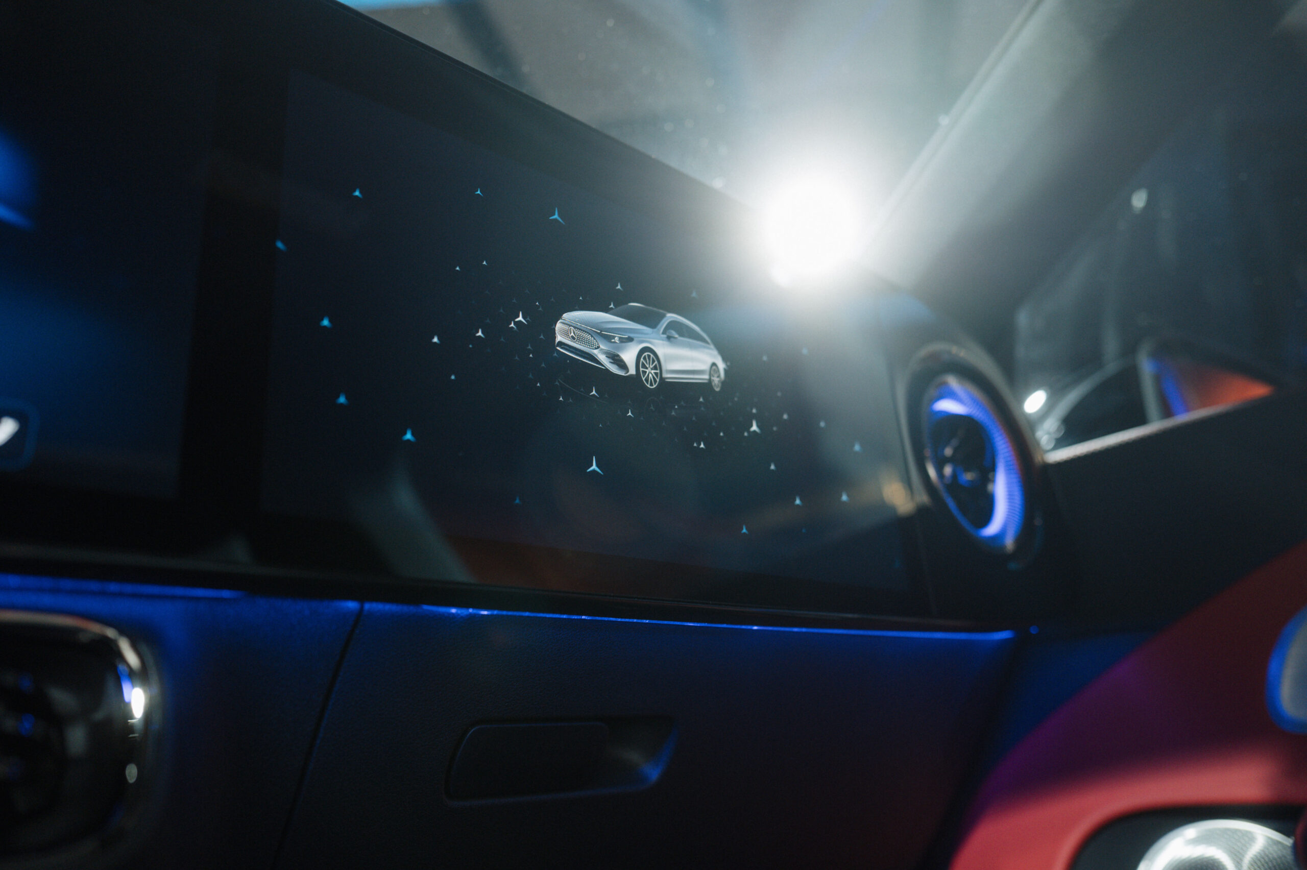 The vehicle runs on the Mercedes-Benz Operating System (MB.OS) and includes cloud connectivity for over-the-air updates. It incorporates digital services such as voice commands powered by AI, real-time navigation using Google Maps, and smart route planning with battery preconditioning for charging stops.