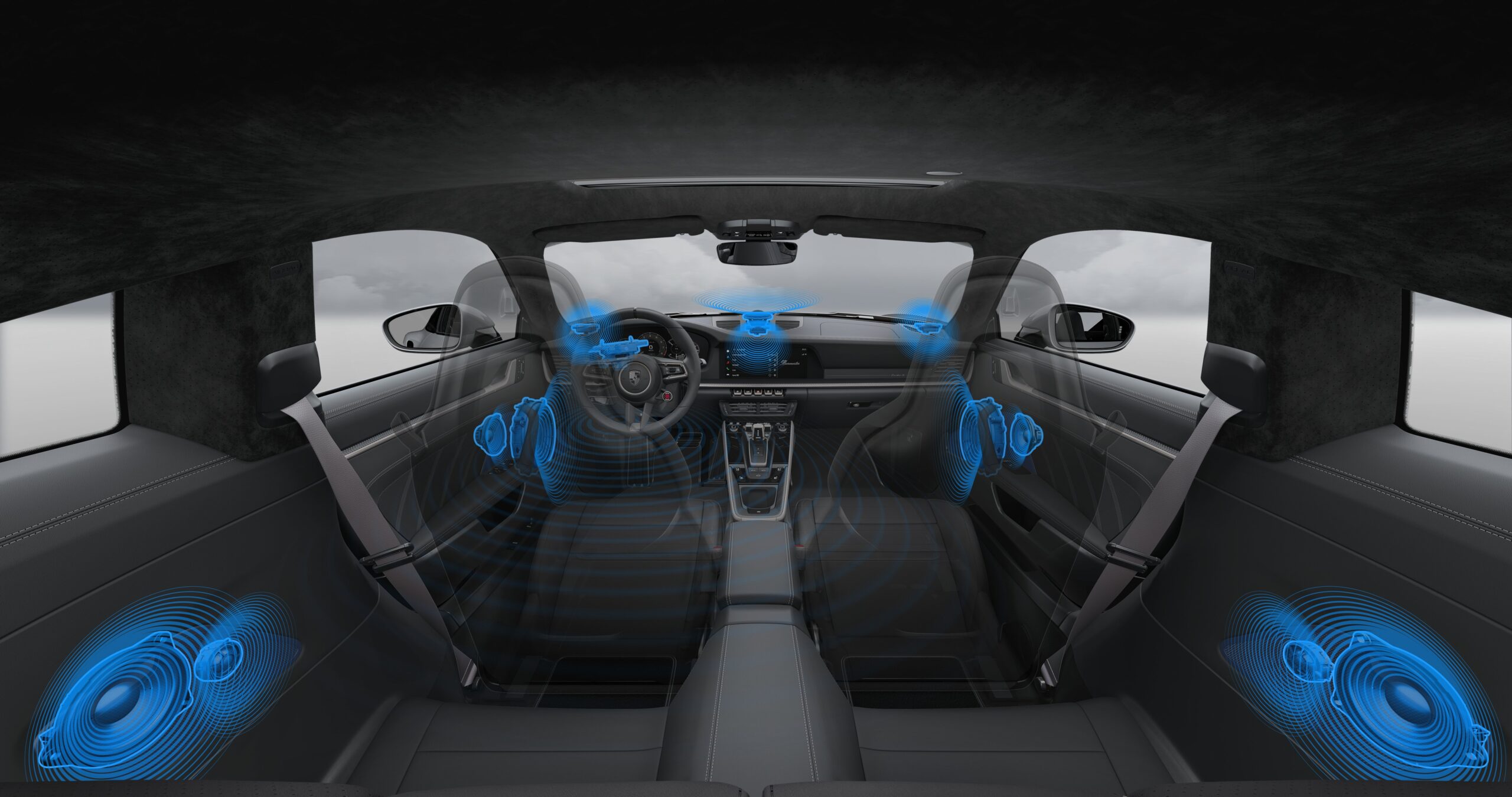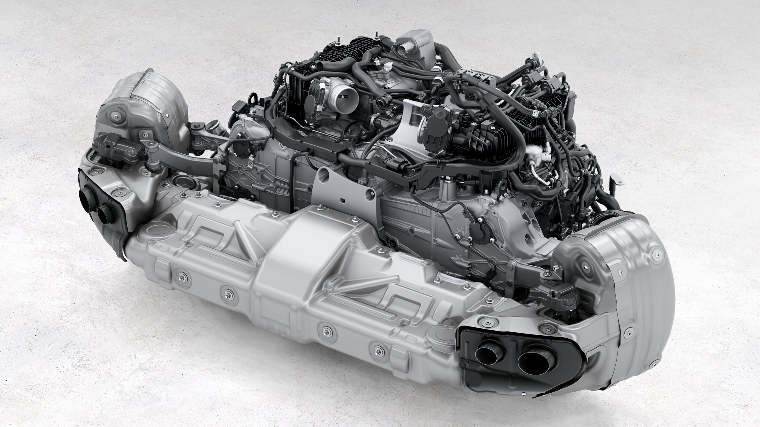 Aerodynamic changes include active cooling air flaps, an adaptive front diffuser, and an extendable rear wing. These elements reduce drag by up to 10 percent compared to the previous model and improve wet-weather braking performance. The standard titanium sport exhaust system and redesigned 3.6-liter flat-six engine contribute to reduced weight and a revised sound profile.