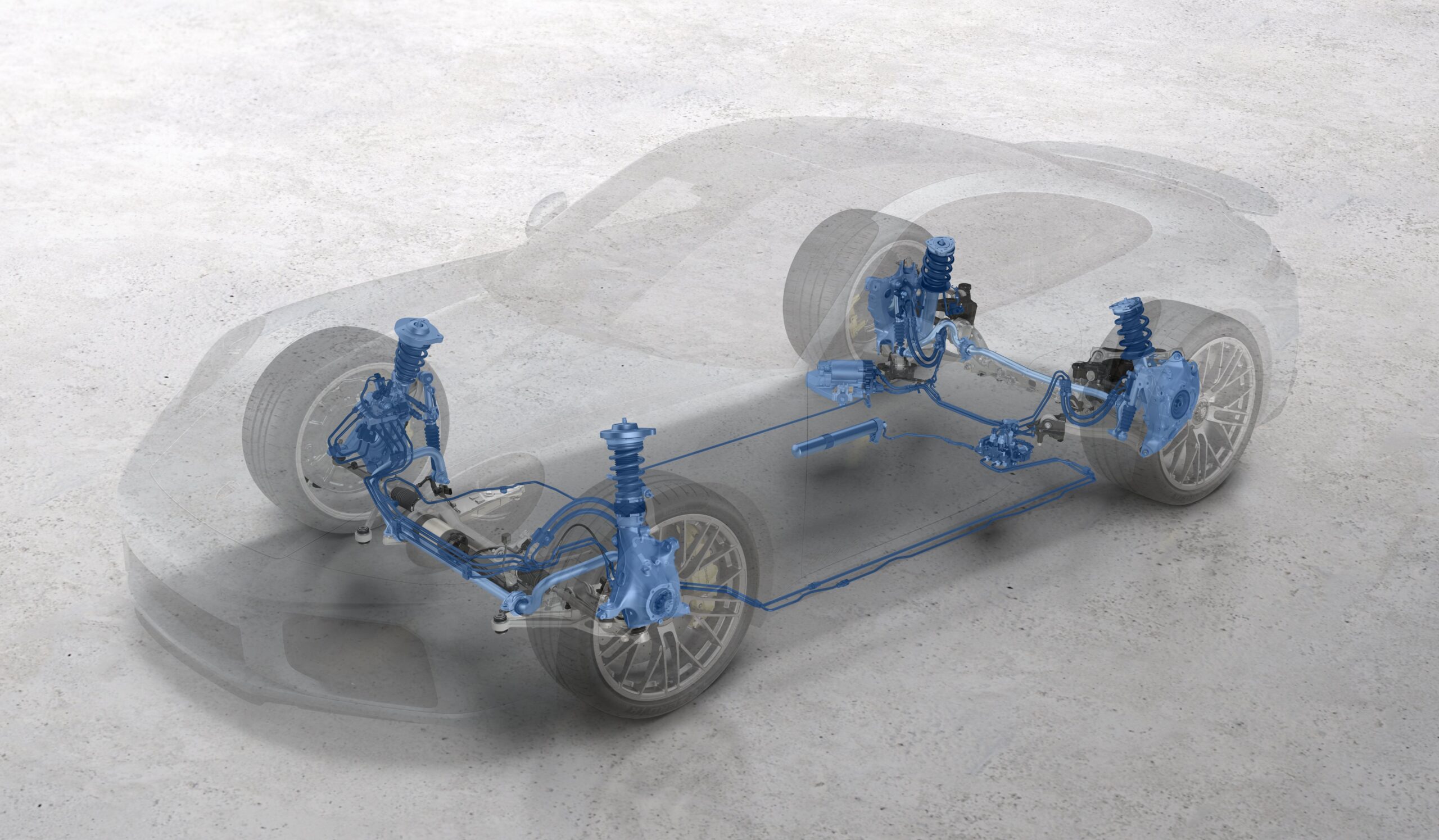 The updated chassis features an electro-hydraulic Porsche Dynamic Chassis Control system, designed to improve cornering stability and agility. The suspension setup works in conjunction with wider rear tires measuring 325/30 ZR 21, while front tire dimensions remain at 255/35 ZR 20. The standard Porsche Ceramic Composite Brakes now use larger 410-mm rear rotors and motorsport-derived brake pads.