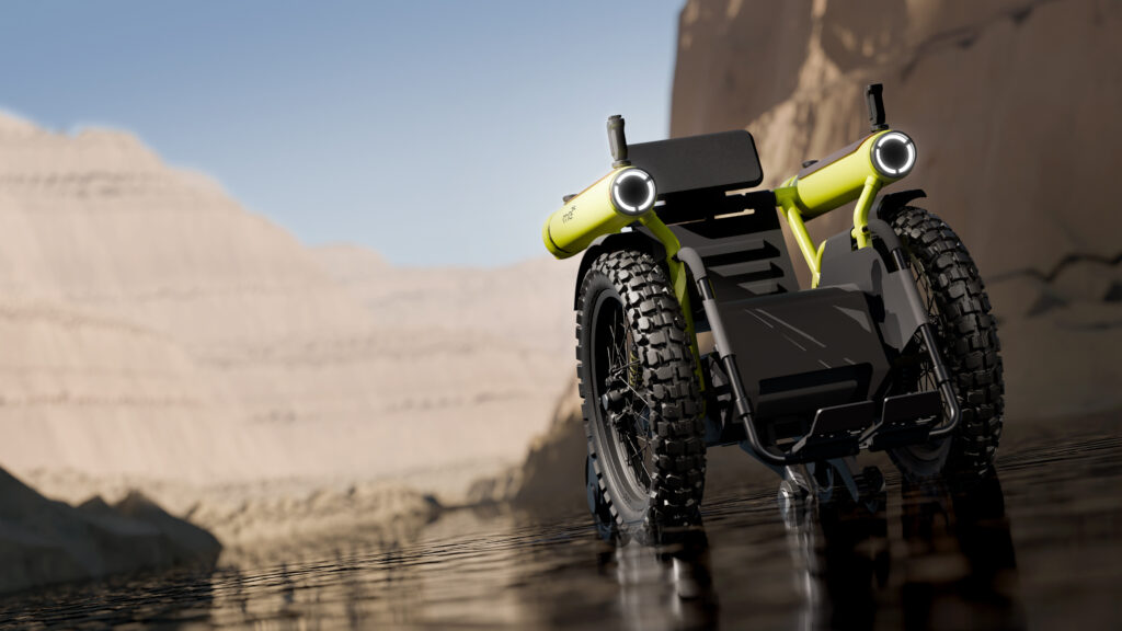 Toyota’s Challenge Me concept is an electric mobility device designed to extend accessibility beyond paved paths. It uses large, knobby off-road tires and an articulated frame that allows it to tackle uneven terrain. The bright yellow tubular structure carries the “me” sub-branding from Toyota’s personal mobility lineup, signaling its focus on independence and adaptability rather than speed or luxury.