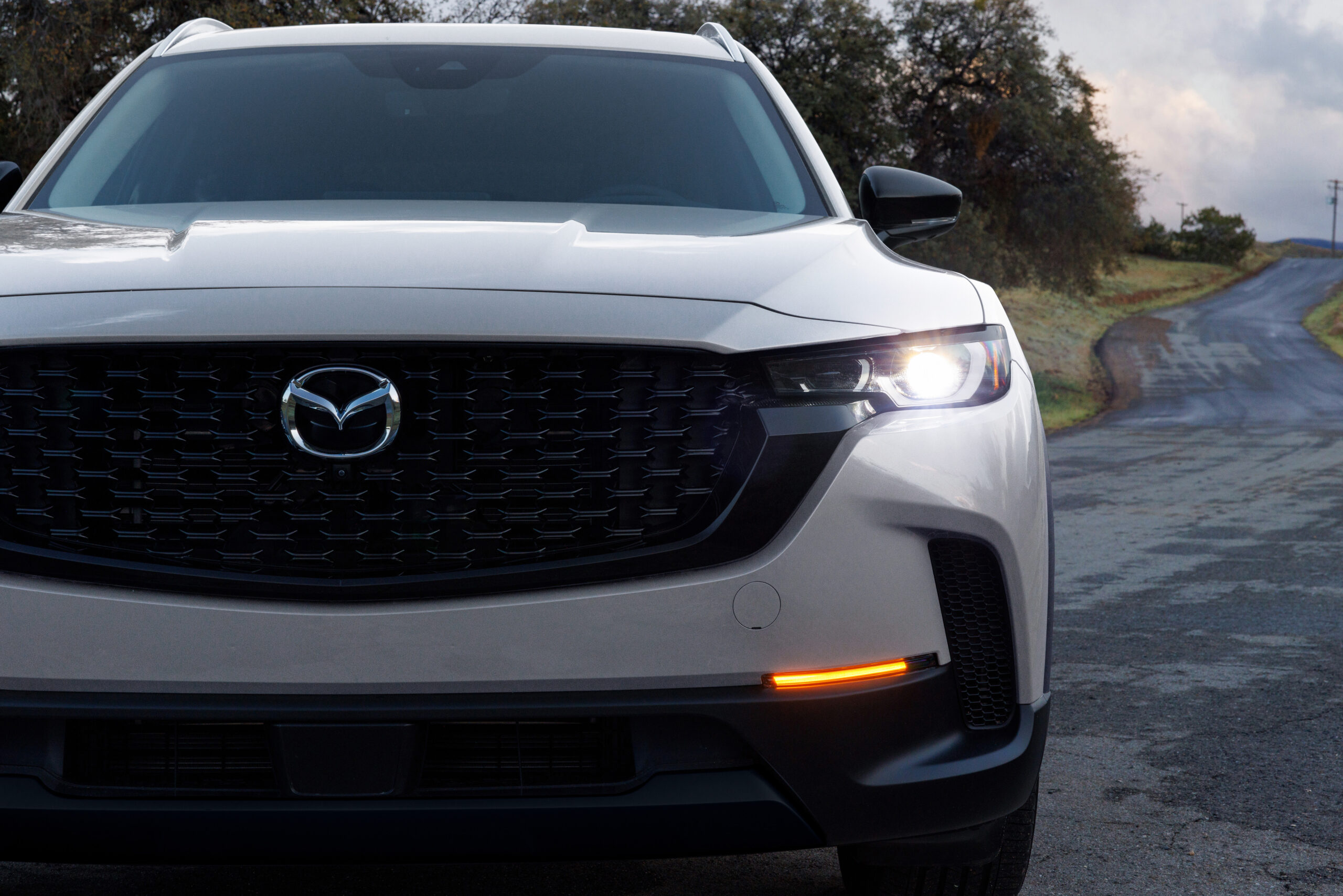 When I picked up my test CX-50 Hybrid from the airport, it was the first time I had experienced the car in person. Yes, I remember Mazda announcing that it was coming, but it had been a few months and quite frankly not at the top of my mind. It’s an attractive-little crossover, with butch black fenders and trim pieces offsetting the white paint. It doesn’t look expensive, but it wears the black fenders better than something like the Subaru Outback.